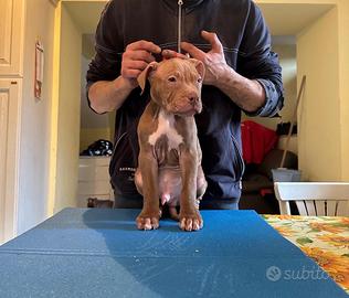 Completi di : vaccini , libretto e certificato di buona salute , 3 cicli anti vermifugo e pedigree ufficiale adba e possibilità di conversione in pedigree ufficiale ukc . Mamma campionessa in gare di sport e papà in gare dì conformazione alla razza, entrambi provenienti dai migliori allevamenti della razza al Mondo . No displasia , no atassia , denti con chiusura a forbice, ossa , altissima morfologia ed elevate linee di sangue : tra le quali chinaman, redboy, old family red nose. No perditempo, solo realmente interessati . Maggiori info in privato