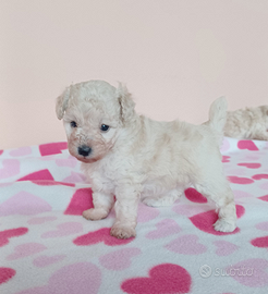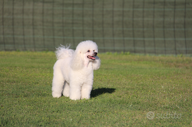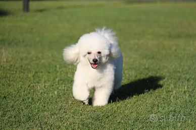 Disponibili tre cucciole femmine di barboncino toy bianco. Vengono consegnate con ciclo completo di sverminazione, vaccinazione, microchip, petigree ENCI e registrazione all'anagrafe canina ASL. Consegna prima di Natale 2025. Nelle foto trovate anche il papà e la mamma, visibili insieme alle cucciole in allevamento.