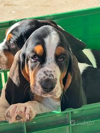 18 settembre, 2 maschi e 4 femmine tutti con mantello tricolore. Entrambi i genitori iscritti ENCI. I cuccioli saranno ceduti sverminati e vaccinati. I cuccioli usano tutti la traversina e sono abituati a mangiare croccantini. Accettare in casa un Bassethound significa vivere un'esperienza incredibile di amore e dedizione, sono cani sensibili e dolcissimi che si legano indissolubilmente alla famiglia. Sono cani molto gentili che convivono senza problemi con altri animali anche gatti.