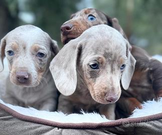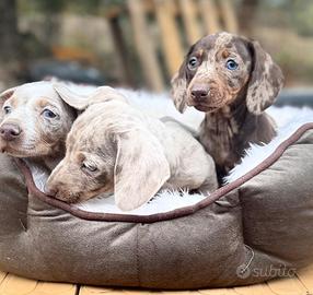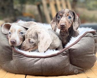 Cuccioli di bassotti Arlecchino, Arlecchino cioccolato, isabella e arlchecchino Isabella sia maschi che femmine, pelo raso.