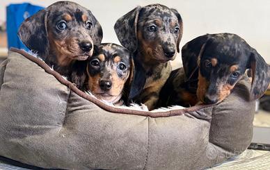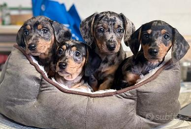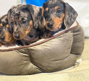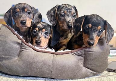 Cuccioli di bassotti Arlecchino, Arlecchino cioccolato, isabella e arlchecchino Isabella sia maschi che femmine, pelo raso.