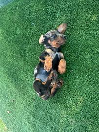 Disponibili da subito meravigliosi cuccioli di bassotto color arlechino silver.I cuccioli sono nati in ambiente familiare e curati con attenzione.I cuccioli anno compiuto 60 giorni sono vaccinati e sver e godono di ottima salute. Genitori visibili sull posto taglia piccola.I cuccioli si rilasciano con libretto sanitario che include primo vaccino e 2 sverminazioni..Per info 3758620240 prezzo 700