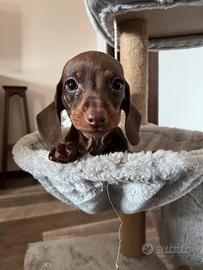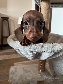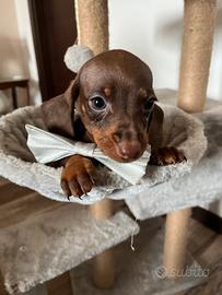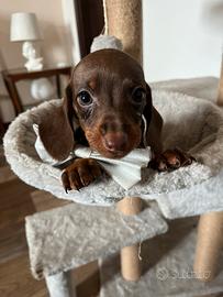 Cucciolata di bassotti nani nati e cresciuti in casa. Sia maschi che femmine disponibili in colorazione marrone cioccolata. Ceduti con doppia sverminazione, primo vaccino e microchip. Ci troviamo a caserta ma disponibili in tutta italia con trasporto animali autorizzato. Contattaci per ulteriori informazioni