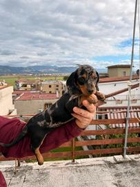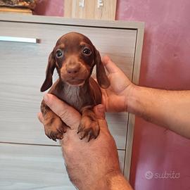 Disponibile da subito unici e meravigliosi cuccioli di bassotto arlecchino silver e cioccolato. I cuccioli sono nati in ambiente familiare e curati con attenzione. Anno compiuto 60 giorni sono vaccinati e sverminati e godono di ottima salute. Genitori visibili sull posto taglia piccola. I cuccioli si rilasciano con libretto sanitario che include primo vaccino e 2 sverminazioni. Per info 375 9050580 prezzo 650