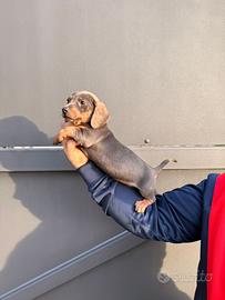 Disponibile da subito meravigliosio cucciolio fi bassotto color blu.Disponibile un maschieto di 75 giorni, vaccinato e sverminato.Genitori visibili sull posto taglia piccola. I cucciolo si rilascia con libretto sanitario che include 2 vaccini e 3 sverminazioni.Per info 3758620240 prezzo 500