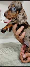 Disponibili meravigliosi cuccioli di bassotto arlecchino cioccolato e cioccolato a pelo corto. Si cederanno con tutti gli adempimenti sanitari microchip prima vaccinazione e 3 sverminazioni. Hanno pedigree ENCI Per qualsiasi info Davide 3314165812