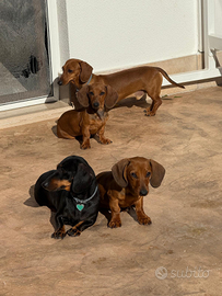 Mi chiamo Manuela Vendo cuccioli di bassotto sono 2,un maschio ed una femmina, hanno 4 mesi, già vaccinati. Sono di razza pura, i genitori sono stessa razza con pedigree. Nell'ultima foto si vedono i genitori che hanno entrambi il ciondolino al collo. Contattami al numero 3926132372
