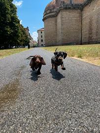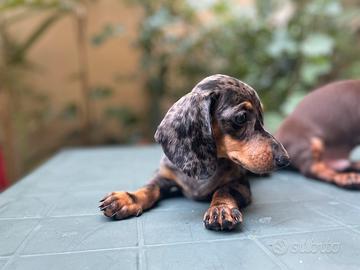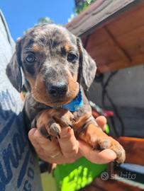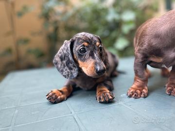 Disponibili splendidi cuccioli di bassotto kaninchen arlecchini, in ottima salute con primo vaccino e sverminazioni effettuate, abituati alla traversina.