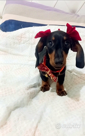 Meravigliose cucciole di bassotto nano nero focato. I cuccioli hanno compiuto 60 giorni, Saranno ceduti sverminati e vaccinati , antipassitario inserito, libretto sanitario ... vi invito a seguire la mia pagina tik.tok ultima foto dove troverete tutti I cuccioli delle nostre cucciolate... e qui su subito.it potete vedere le mie recensioni per farvi un idea con cui interagite. Per info... potete contattarmi al 349 7812886 si gradisce contatto telefonico. Prezzo 1000 euro a cucciolo.