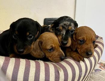 Disponibili per la prenotazione splendidi cuccioli di bassotto Arlecchino è nerofocato , maschi e femmine. La razza è nota per essere estremamente attiva, intelligente ,vivace e adatta alla vita in appartamento, purché riceva la giusta attività fisica. Documentazione: I cuccioli saranno ceduti dopo i 60 giorni con microchip e libretto sanitario in regola,sverminature,passaggio di proprietà e assistenza Socializzazione: Cresciuti in ambiente familiare per garantire un carattere equilibrato. Per maggiori info altre foto e prezzo tel o entrambi disponibili su whatsapp,POSSIBILITÀ DI FINANZIAMENTO:puoi pagare il costo del cucciolo con comode rate a tasso zero.