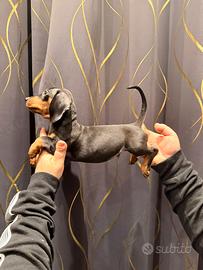 Disponibile da subito unici e meravigliosi cuccioli di bassotto nero focato..I cuccioli sono nati in ambiente familiare e curati con attenzione. I cuccioli anno compiuto 65 giorni sono vaccinati e sverminati e godono di ottima salute. Genitori visibili sull posto taglia piccola. I cuccioli si rilasciano con libretto sanitario che include primo vaccino e 2 sverminazioni. Per info 375 9050580 prezzo 400
