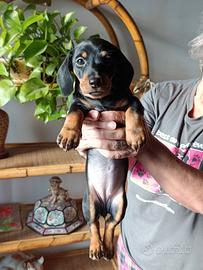 Cuccioli di bassotto di 2 mesi due femmine nero focato è un maschio fulvo carbonato saranno disponibili i primi di luglio con primo vaccino e sverminazioni fatte.