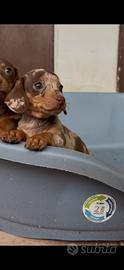splendidi cuccioli di bassotto femmine e maschi disponibili di circa 75 giorni. I cuccioli saranno ceduti con libretto sanitario, sverminazioni effettuate, quadro vaccinale avviato, microchip, iscrizione all'anagrafe canina, passaggio di proprietà e fattura. Possibilità di pagamento rateale. Effettuiamo consegne in tutta Italia, il nostro allevamento si trova a Sarno, in provincia di Salerno. Ci trovi su tutte le pagine come "exotic french kennel". Per ulteriori informazioni 3801794943.