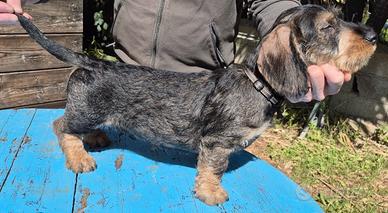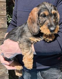 Cuccioli di bassotto tedesco a pelo duro, taglia standard di 3 mesi. Si cedono con trattamento antiparassitario, 2 Vaccini e libretto sanitario.