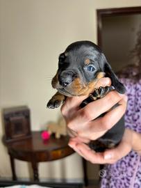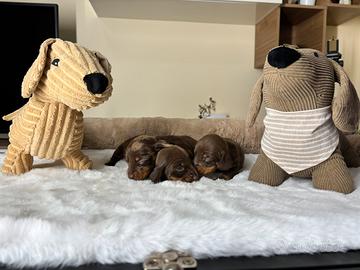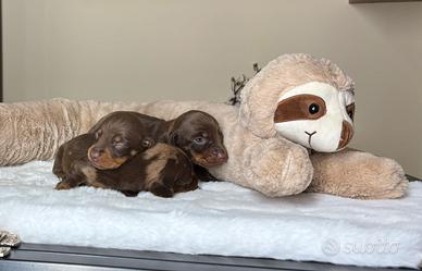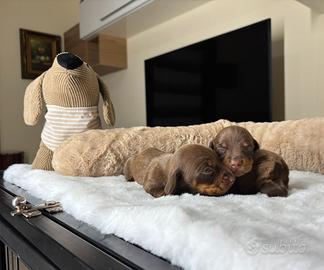 Salve, disponibili alla prenotazione, bellissimi cuccioli di bassotto tedesco a pelo corto, cioccolato, arlecchino cioccolato e nero focato, di altissima qualità. I cuccioli sono nati il 19/03/2026, verranno ceduti a 65/70 giorni di vita, già avviati alla traversa, con 3 cicli di vermifugo, 2 vaccini, libretto sanitario, microchip con iscrizione all'anagrafe canina e certificato di buona salute. Genitori visibili, non esitate a contattarci. Siamo disponibili a qualsiasi ora tramite whatsapp al numero +39 351 873 2552 Alessandro. Massima serietà e disponibilità! Cordiali saluti.