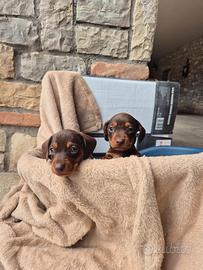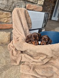 Ultimi due cuccioli di bassotto tedesco nano Disponibili gli ultimi due maschietti color cioccolato focato. Nel prezzo è compreso certificato ENCI (pedigree), sverminazioni, vaccinazioni e microchip. Nati il 19 Febbraio, i cuccioli saranno disponibili dopo i 60 giorni