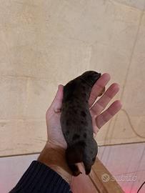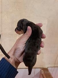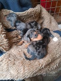 Disponibili cuccioli di bassotto tedesco nano, di diverse cucciolate, pelo corto, nati verso metà novembre color cervo 750 euro, nero focato 800 euro , arlecchino a 1.000 euro e arlecchino cioccolato a 1.100 euro. Per tutti i cuccioli appena nati accettiamo la prenotazione perché saranno svezzati tra la prima e l'ultima settimana di gennaio e comunque non prima di aver compiuto i 60 giorni di vita ed essere autonomi dalla mamma. Tutti i piccoli provengono da allevamento 100% Italiano nei pressi di Alessandria. Il carattere è dolcissimo e sono adatti a stare in qualsiasi famiglia. Possibilità di visionarli, senza impegno, riceviamo tutti i giorni, anche sabato e domenica, ma solo su appuntamento, oppure con videochiamata. I piccoli sono ceduti con: 1° vaccino, 1° vermifugo, 1° antiparassitario e microchip, 1 visita veterinaria, garanzia sanitaria scritta fino all'anno del cucciolo. Ritiro presso l'allevamento o con consegna,ma solo su accordo preventivo per rimborso spese di trasporto. Per informazioni e/o appuntamenti contattatemi in privato, Pamela