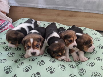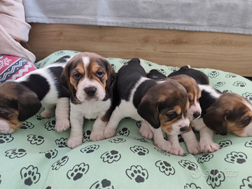 Bellissimi cuccioli di Beagle, 2 maschi e 3 femmine, cresciuti in ambiente familiare con tanto amore