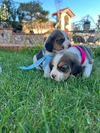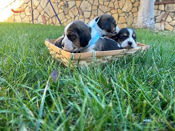 Disponibili bellissimi cuccioli di Beagle tricolore da genitori con entrambi pedigree, visibili e di nostra proprietà. Verranno ceduti dopo il ciclo di sverminazione completa, con prima vaccinazione e visita veterinaria.