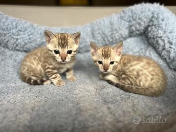 Disponibili meravigliosi gattini del Bengala Snow, maschio Lynx e femmina Mink. I piccoli verranno ceduti svezzati con dieta Barf, , trattamenti per endo ed ectoparassiti, thermochip, prime vaccinazioni e pedigree da compagnia o da riproduzione. Il prezzo varia a seconda della documentazione (riproduzione/compagnia). Preferibile contatto telefonico per maggiori informazioni.