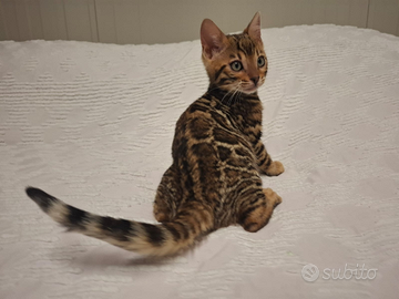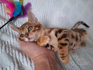 Gattini cuccioli di Bengala di tre mesi, da subito disponibili. Si cedono vaccinati, sverminati, con microchip, pedigree ANFI da compagnia. Possibilità di pedigree da riproduzione a prezzo diverso. Possibilità di consegna in diverse regioni d'Italia. Genitori visibili entrambi, testati per le malattie genetiche pra-b e pk-def. E controllati a livello di cuore tramite ecocardio.
