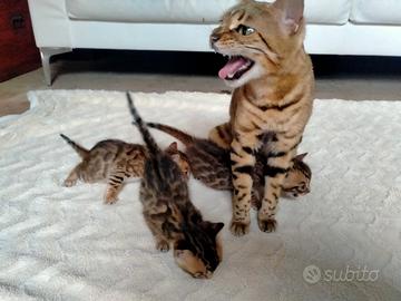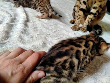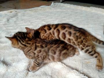 Cuccioli di Bengala nati due settimane fa. Disponibili tra due mesi e mezzo. Da allevamento regolare. Sono rimasti liberi 2 maschietti. Invio video su 328 87 26 251 Licia.