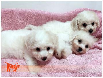 Cuccioli di BICHON A POIL FRISE Nati nel nostro allevamento, sono tutti in ottima salute e verranno venduti con Pedigree Roi, Microchip, libretto sanitario con vaccinazioni e programma di sverminazione completato.