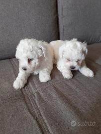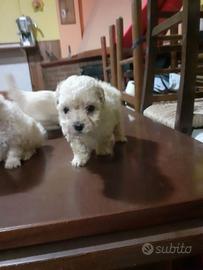 disponibili da allevamento amatoriale due cucciolate sia di razza bolognese e sia di bichon frisè,piccola taglia sui 4-4.5kg circa adulto ancora disponibile una femmina e due maschi di quasi 60 gg compiuti disponibili tra 10-12gg ,i cuccioli sono cresciuti in luogo familiare e verranno gia abituati un po alla traversina. non perdono pelo,perfetti per l appartamento e per i bambini. prezzo 700-800 a secondo del cucciolo ,non tratt. ceduti con primo vaccino,doppia sverminazione e libretto sanitario.