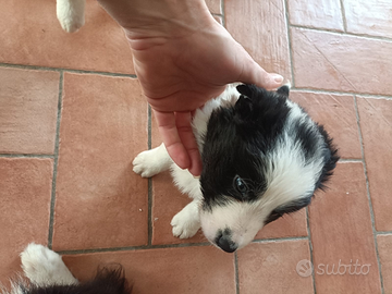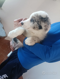 Vendo stupendi cuccioli di border collie nati il 15 ottobre 1 maschio con mantello Blue Merlo occhi azzurri. 450e 1femmina mantello nero/bianco 350e No pedigree genitori visibili e tenuti in appartamento