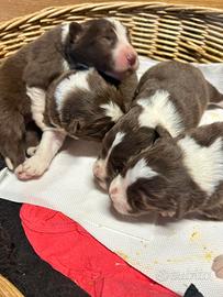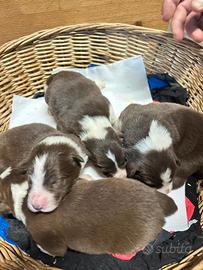 Vendo cuccioli di border collie maschi tutti color cioccolato di alta genealogia nati al 13 Gennaio e pronti dopo 2 mesi. I genitori sono esenti da displasie e con tutti i test genetici perfetti. I cuccioli saranno venduti con pedigree vaccinati sverminati e con microcip. Per altre iformazioni chiamateci al 3473090910 grazie Maddalena e Pier.
