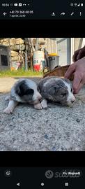 Eccoci qua mamma Cristal è papà skubi hanno dato alla luce 7 bellissimi cuccioli 5 femmine bianco nere una femmina merle e un maschio merle. I cuccioli nascono in fattoria a contatto con persone e varie specie di animali . Verranno ceduti da metà maggio con libretto sanitario primo vaccino vermifugo e pedigree ENCI. Già da piccoli cerchiamo di fare fare molte esperienze hai cuccioli in modo da fargli scoprire il mondo ed eliminare possibili paure. Per qualsiasi informazione contattatemi pure al 3466509530 . Nelle foto trovate il papà merle e la mamma bianconera.