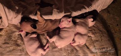Salve vendo 4 cuccioli di bouldog francese 2 maschi e 2 femmine genitori visibili nati il 24 marzo e disponibili dal 25 maggio . Verranno consegnati con vaccino sverminazione e micro chip da intestare al futuro proprietario libretto sanitario