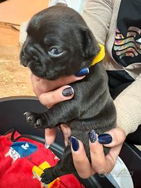 Vendo bellissimo cucciolo di bulldog ultimo maschietto colorazione nero con muso e petto bianco il cucciolo verrà consegnato con vaccino microchip e sverminazione