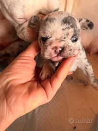 Cuccioli di bulldog francese esotici nati il 20 Ottobre da genitori visibili , mamma platinum liliac e papà blue merlè si vendono previo accertamenti pre affido.