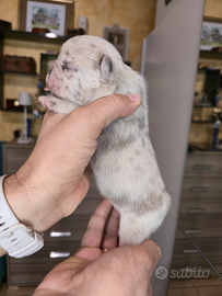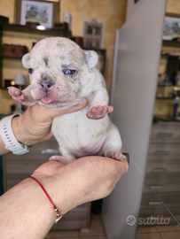 Disponibili su prenotazione bellissimi cuccioli di bulldog francese esotico. Colori disponibili blu merle, blu faun e blu tan. I cuccioli sono nati e crescono in casa e saranno pronti dopo il 20 gennaio. Genitori di mia proprietà e visibili. Il padre è blu merle carrier cream esotico occhi verdi e la mamma blu tan fluffy esotico. I cuccioli verranno ceduti con libretto sanitario, primo vaccino e sverminati