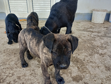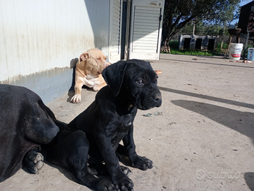 Vendo cuccioli di cane corso originali nati il 17 ottobre 2025, padre con pedigree di alta genealogia, i cuccioli sono esenti da patologie e displasie genetiche, disponibili 1 maschio nero tigrato e una femmina nera, vendo cuccioli con 2 sverminazioni e 2 vaccini.