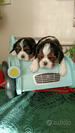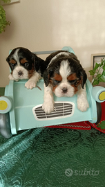 Disponibili un maschi e una femmina di cuccioli di Cavalier king Ciarles Spaniel tricolor, saranno ceduti con primo vaccino sverminazione completa microchip pedigree Enci di alta genealogia comprese le certificazioni dei genitori testati ed esenti dalle principali patologie della razza, consegnamo in tutta Italia affidandoci a personale competente, siamo disponibili alle videochiamate e previo appuntamento è possibile venire in allevamento a vederli per ulteriori informazioni contattatemi al numero 333.3902885 grazie
