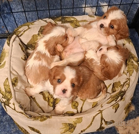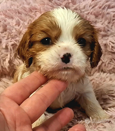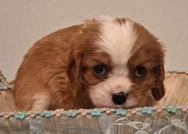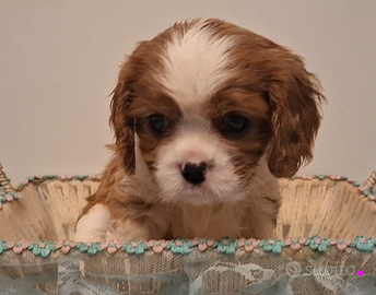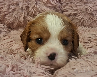 Dolcissime cucciole di Cavalier King Charles Spaniel, disponibili 2 femminucce blenheim. Le cucciole hanno quasi 2 mesi e saranno disponibili da metà febbraio. Le piccole hanno vaccino, doppia sverminazione, antiparassitario, libretto sanitario, iscrizione ad anagrafe canina, kit puppy, certificato veterinario di salute. Sono provvoste di pedigree ed hanno genitori con test genetici e certificazioni per occhi, cuore e rotule. Le cucciole hanno un carattere mansueto, sono cresciute in casa e sono abituate all'ambiente domestico. È preferibile prima di accogliere in casa un cucciolo conoscere i genitori. Le cucciole sono visibili previo appuntamento contattando il numero 320 3157031