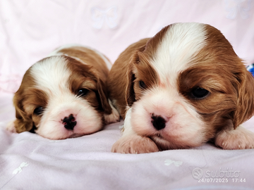 Disponibili due cuccioli maschi di cavalier king nelle colorazioni tricolor e blenheim e una femmina blenheim. I cuccioli sono figli di genitori testati ed esenti per le principali patologie ereditarie e genetiche della razza. I cuccioli verranno ceduti con sverminazioni, vaccini in base all'età, microchip e pedigree ENCI. Prezzi a partire da 1800€
