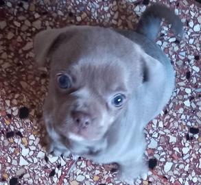 Cuccioli di Chihuahua a pelo corto di 2 mesi compiuti in pronta consegna con primo vaccino. Maschietti di colori bellissimi: lilac, tortora e nero con collare e calzari bianchi. Cercano famiglie amorevoli.