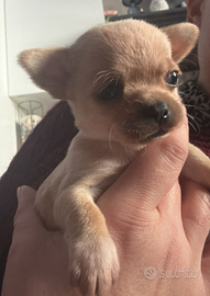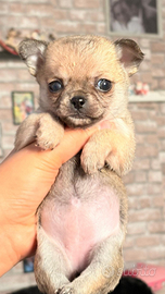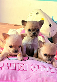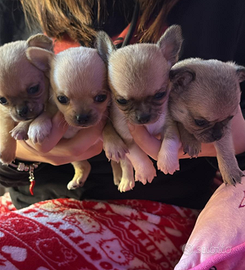 Disponibili per fine gennaio cuccioli di chihuahua,tre femmine e un maschio ..tre taglia toy e uno taglia mini toy ..mamma e papà di nostra proprietà e quindi visibili ..papà a pelo lungo mamma a pelo corto non superano i 2.5kg ,i cuccioli verranno consegnati con