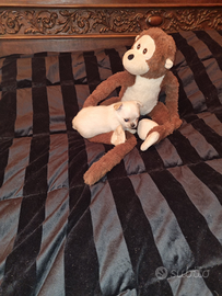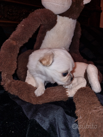 Ultimi due cuccioli maschietti di chihuahua puri total white con occhi azzurri veramente piccolissimi ,splendidi ,stanno in un palmo di mano hanno 35 giorno foto reali genitori visibili entrambi di mia proprietà verranno consegnati al 60 gg di età, cresciuti in famiglia abituati con I bambini, molto socievoli carattere equilibrato abituatia sporcare sulla traversina si cedono con 3 sverminazioni, vaccino, microchip passaggio di proprietà incluso contatto telefonico 3791459776