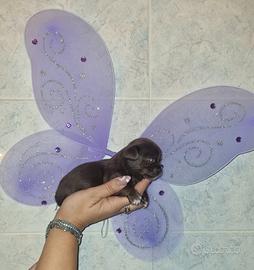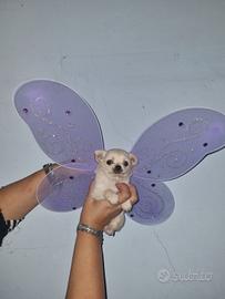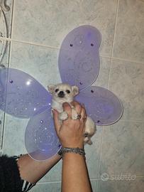 Ultimi due cuccioli di chihuahua piccolissimi microscopici rimarranno molto piccoli intorno al 1,2 kg genitori visibili entrambi di mia proprietà, sono nati il 24 gennaio e saranno disponibili al compimento dei 60gg abituati alla traversina cresconono in casa dolci, affettuosi giocarelloni un maschietto cioccolato pelo corto occhi azzurri e una altro maschietto pelo lungo bianco occhi azzurri su cedono con ciclo di sverminazioni, vaccino, microchip passaggio di proprietà, libretto sanitario contatto telefonico 3791459776 grazie.