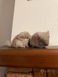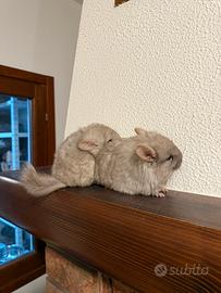 Disponibili presso il nostro allevamento amatoriale due bellissimi cuccioli di cincillà angora. Sono un maschietto (color beige eterozigote) e una femminuccia (light tan), entrambi angora (pelo lungo), nati a fine agosto. Dolcissimi ed abituati al contatto, genitori ed altri soggetti visibili presso il nostro piccolo allevamento amatoriale situato a Cambiago (MI).