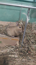 Cuccioli degu del Cile molto buoni affettuosi coccoloni abituati a essere maneggiati adatti ai bambini saranno pronti fra quattro settimane Chi ne vuole uno o più di uno perché di solito questi stanno in coppia quindi sarebbe meglio prendere due o due femmine o due maschi come volete sono molto dolci e poi magari quando ci sentiamo per telefono se siete veramente interessati vi spiego questo animale che è molto molto amorevole e si affeziona tantissimo al padrone se volete posso andare anche video