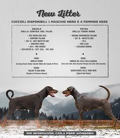 Sono disponibili splendidi cuccioli di Dobermann, nati il 18 marzo, allevati con amore in ambiente familiare e seguiti con la massima attenzione sin dai primi giorni. Cuccioli sani, equilibrati e abituati al contatto umano in ambiente familiare. Genitori visibili, selezionati e dal carattere dolce e stabile. Verranno ceduti con: Pedigree ENCI Microchip Prima vaccinazione Sverminazione Certificato veterinario Pronti per entrare nella loro nuova casa da metà maggio (prenotazioni già aperte) Salerno Se stai cercando un compagno fedele e affettuoso, questi piccoli stanno aspettando proprio te!