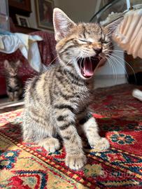 Disponibili splendidi cuccioli frutto di un incrocio tra un elegante Bengala spotted Brown con pedigree con rosette marroni e manto beige e un dolcissimo gatto europeo.