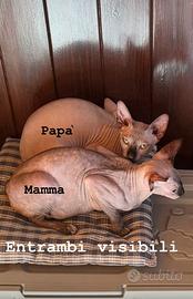 Vendo 2 cuccioli Sphynx 1 maschio (rosa peach) 1 femmina (nera rubber ) Nati a fine marzo e ceduti a fine maggio compiuti 2 mesi di età con sverminazione, libretto sanitario di buona salute e primo vaccino. per info 3534338937 solo seriamente interassati