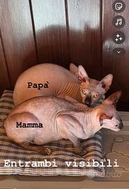 Disponibili 2 cuccioli di Sphynx 1 femmina nera 1 maschio rosa Nati a fine marzo e ceduti a fine maggio Saranno ceduti con 1 vaccino, libretto sanitario sverminazione