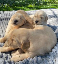 Disponibile splendida cucciolata di Golden Retriever linea 100% americana, in cerca di una nuova famiglia amorevole.?Carattere dolce, equilibrato e socievole, ideale sia per famiglie con bambini che per chi cerca un compagno affettuoso e fedele. -Microchip già inserito?-3 cicli di sverminazione effettuati?-2 vaccinazioni complete?-Pedigree ENCI?-Certificato di buona salute rilasciato dal veterinario?-Documentazione completa dei genitori (entrambi visibili e con ottima genealogia) Sono cresciuti in ambiente familiare, abituati al contatto umano e alla socializzazione con altri animali. Garantiamo massima serietà e disponibilità per accompagnare i cuccioli nella sua nuova casa.?Per maggiori informazioni, foto o per venirli a conoscere, non esitate a contattarmi al +393357110241